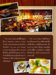ร้าน Long Table แห่งนี้ตั้งอยู่บน ร้าน Long Table จัดที่นั่งแบ่ง ชั้น 25 ของอาคาร Column Tower ออกเป็นหลายๆ โซน แต่ที่น่าสนใจคือ ร้านมีการตกแต่งออกแนวโมเดิร์น เจ้าโต๊ะนั่งยาว สมชื่อนั่นแหละค่ะ คือ เรียกได้ว่า hip and chic กันเลย แบบว่ายาวจริงๆ ซึ่งโดย คอนเซ็ปต์ บรรยากาศจะเป็นแบบชิวๆ สบายๆ ของร้านนี้คือ อยากให้ทุกๆ คนได้นั่ง มีให้เลือกนั่งได้ทั้งในและนอกร้าน โต๊ะเดียวกัน ไม่มีการแบ่งแยกอะไร ส�าหรับที่นั่งในส่วนระเบียงต้องบอกว่า ประมาณนี้ วันไหนอากาศดีๆ นั่งจิบแอลกอฮอล์ เพลินกันเลย