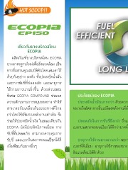เกี่ยวกับยางบริดจสโตน ECOPIA ผลิตภัณฑ์ยำงบริดจสโตน ECOPIA ยำงมำตรฐำนใหม่เพื่อสิ่งแวดล้อม เป็น ยำงที่ผสำนคุณสมบัติอันโดดเด่นเอำไว้ ด้วยกันอย่ำง ลงตัว ทั้งประหยัดน�้ำมัน และกำรขับขี่ที่ปลอดภัย และอำยุกำร ใช้งำนยำวนำนยิ่งขึ้น ด้วยส่วนผสม พิเศษ ECOPIA COMPOUND ช่วยลด ประโยชน์ของ ECOPIA ควำมต้ำนทำนกำรหมุนของยำง ท�ำให้ ประหยัดน�้ำมันมำกกว่ำ ด้วยควำมต้ำนทำนกำรหมุนของยำงที่ต�่ำของ ECOPIA จึงมีรอบกำรหมุนของล้อได้ดีขึ้น ซึ่งนั้นก็ สำมำรถขับเคลื่อนในระยะทำงที่ไกล หมำยถึงอัตรำกำรสิ้นเปลืองพลังงำนที่ต�่ำลงกว่ำยำงทั่วๆไป พูดได้ว่ำ ECOPIA สำมำรถช่วยประหยัดน�้ำมันและรักษำสิ่งแวดล้อม กว่ำโดยใช้ปริมำณพลังงำนเท่ำเดิม จึง ช่วยให้ประหยัดน�้ำมัน ในขณะเดียวกัน ปลอดภัยในกำรขับขี่ยิ่งกว่ำ ถึงแม้จะเป็นยำงที่มีควำมต้ำนทำนกำรหมุนที่ต�่ำ ECOPIA ก็ยังคงไว้ซึ่งประสิทธิภำพในกำร ECOPIA ยังมีประสิทธิภำพเยี่ยม กำร เบรกบนสภำพถนนเปียกได้ดีกว่ำยำงทั่วๆ ไป ขับขี่ที่ปลอดภัย สำมำรถควบคุมกำร ขับขี่ และเบรกในสภำพถนนเปียกได้ดี อำยุกำรใช้งำนยำวนำนกว่ำ นอกจำกจะเป็นยำงที่พัฒนำให้มีควำมต้ำนทำนกำรหมุนที่ต�่ำ แต่ยังคงไว้ซึ่งสมรรถนะในกำร เมื่อเทียบกับยำงอื่นๆ เบรกที่ดีเยี่ยม อำยุกำรใช้งำนของยำง ECOPIA ก็ยังไม่น้อยหน้ำกว่ำยำงทั่วๆ ไป ซึ่งนับว่ำเป็นกำรช่วยประหยัดเงินและรักษำ สิ่งแวดล้อมได้อีกด้วย