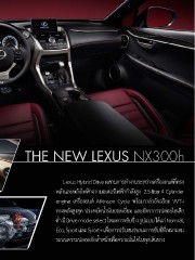 THE NEW LEXUS NX300h Lexus Hybrid Drive ผสานการท�างานระหว่างเครื่องยนต์ที่ทรง พลังและพลังไฟฟ้าจากมอเตอร์ไฟฟ้าก�าลังสูง 2.5-liter 4 Cylinder engine เครื่องยนต์ Atkinson Cycle พร้อมวาล์วอัจฉริยะ VVT-i ทรงพลังสูงสุด ประหยัดน�้ามันยอดเยี่ยม และอัตราการปล่อยไอเสีย ต�่า มี Drive mode select โหมดการขับขี่ 4 รูปแบบ ได้แก่ Normal, Eco, Sport และ Sport+ เพื่อการปรับสมรรถนะการขับขี่ที่เหมาะสม ระบบความปลอดภัยล�้าหน้าเพื่อความมั่นใจในทุกเส้นทาง