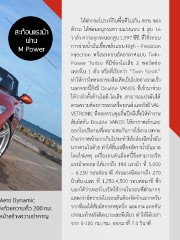 ใต้ฝากระโปรงที่กินพื้นที่ไปเกิน 40% ของ สะท้อนแรงม้า ตัวรถ ได้ซ่อนอนุกรมความแรงแบบ 4 สูบ 16 ผ่าน วาล์ว ความจุกระบอกสูบ 1,997 ซีซี. ที่ใช้ระบบ M Power การจ่ายน�้ามันเชื้อเพลิงแบบ High – Precision Injection พร้อมระบบอัดอากาศแบบ Twin- Power Turbo ที่มีช่องไอเสีย 2 พอร์ตต่อ เทอร์โบ 1 ตัว หรือที่เรียกว่า “Twin Scroll” ท�าให้การไหลออกของไอเสียเป็นไปอย่างรวดเร็ว นอกจากนี้ยังมี Double VANOS ที่เข้ามาช่วย ให้วาล์วทั้งด้านไอดี-ไอเสีย สามารถแปรผันได้ ตามความต้องการของเครื่องยนต์ และยังมี VAL- VETRONIC ที่คอยควบคุมลิ้นปีกผีเสื้อให้ท�างาน สัมผัสกับ Double VANOS ให้อากาศเข้าและ ออกในปริมาณที่เหมาะสมกับการใช้งาน เพราะ ถ้าอากาศเข้ามากเกินไปจะท�าให้กล่องฉีดน�้ามัน มากตามไปด้วย ท�าให้สิ้นเปลืองอัตราน�้ามันมาก โดยใช่เหตุ เครื่องยนต์บล็อคนี้จึงสามารถรีด แรงม้าออกมาได้มากถึง 184 แรงม้า ที่ 5,000 – 6,250 รอบต่อนาที ส่วนแรงบิดมากถึง 270 นิวตัน-เมตร ที่ 1,250-4,500 รอบต่อนาที ซึ่ง บอกได้ว่าเทอร์โบเปิดใช้งานในรอบที่ต�่ามากๆ ที่โดนใจที่สุด คือ ระบบ Aero Dynamic แสดงว่าอัตราเร่งในรอบต้นต้องจัดจ้านมากครับ ที่แม้คุณจะเปิดประทุนวิ่งด้วยความเร็ว 200 กม. จากที่ผมได้สัมผัสจากหยุดนิ่ง และกระแทกคัน /ชม. จะไม่มีลมพัดผ่านหน้าสร้างความร�าคาญ เร่งจมเท้าหลังติดเบาะเลยทีเดียว ท�าให้ได้เวลา ระหว่างขับขี่แน่นอน จาก 0-100 กม./ชม. ออกมาที่ 7.4 วินาที
