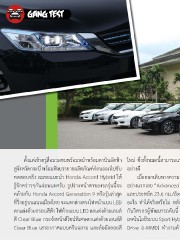 ตั้งแต่เช้าตรู่สื่อมวลชนพร้อมหน้าพร้อมตาบินลัดฟ้า ใหม่ ซึ่งทั้งหมดนี้สามารถแทนค�าว่า “HYBRID” ได้เป็น สู่จังหวัดกระบี่ พร้อมฟังบรรยายผลิตภัณฑ์ก่อนออกไปขับ อย่างดี ทดสอบจริง ผมขอแนะน�า Honda Accord Hybrid ให้ เมื่อออกเดินทางความอยากรู้อยากเห็นก็เริ่มเกิดขึ้น รู้จักคร่าวๆกันก่อนนะครับ รูปร่างหน้าตาของรถรุ่นนี้จะ อย่างแรกเลย “Advanced Full Hybrid” “ 2 มอเตอร์” คล้ายกับ Honda Accord Generation 9 หรือรุ่นล่าสุด และประหยัด 23.6 กม./ลิตร เหนือกว่าคู่แข่งอย่างไร คือ ที่วิ่งอยู่บนถนนเมืองไทย จะแตกต่างตรงไฟหน้าแบบ LED อะไร ท�าได้จริงหรือไม่ หลังจากที่ทดลองขับแล้ว พูดคุย ตกแต่งด้วยกรอบสีฟ้า ไฟท้ายแบบ LED ตกแต่งด้วยเลนส์ กับวิศวกรผู้พัฒนารถคันนี้ นวัตกรรมการขับเคลื่อนที่มี สี Clear Blue กระจังหน้าดีไซน์พิเศษตกแต่งด้วยเลนส์สี เทคโนโลยีระบบ Sport Hybrid Intelligent Multi-Mode Clear Blue เสาอากาศแบบครีบฉลาม และล้ออัลลอยสี Drive (i-MMD) ท�างานด้วยเครื่องยนต์เบนซิน 4 สูบ