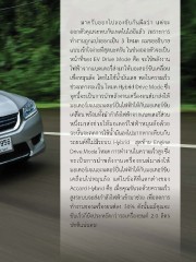 มาครับออกไปลองขับกันดีกว่า แค่จะ ออกตัวคุณจะพบกับเทคโนโลยีแล้ว เพราะการ ท�างานถูกแบ่งออกเป็น 3 โหมด ผมขออธิบาย แบบเข้าใจง่ายที่สุดนะครับ ในช่วงออกตัวจะเป็น หน้าที่ของ EV Drive Mode คือ จะใช้พลังงาน ไฟฟ้าจากแบตเตอรี่ส่งมาให้มอเตอร์ขับเคลื่อน เพื่อหมุนล้อ โดยไม่ใช้น�้ามันเลย พอในความเร็ว ช่วงกลางจะเป็น โหมด Hybrid Drive Mode ซึ่ง จุดนี้จะเป็นการน�าพลังงานเครื่องยนต์มาส่งให้ มอเตอร์เจเนอเรเตอร์ปั่นไฟฟ้าให้กับมอเตอร์ขับ เคลื่อน พร้อมทั้งน�าก�าลังไฟฟ้าจากแบตเตอรี่ส่วน หนึ่งมาส่งช่วยให้มอเตอร์ไฟฟ้าหมุนล้อด้วย ฉะนั้นจะลดการใช้น�้ามันลงไปมากหากเทียบกับ รถยนต์ที่ไม่มีระบบ Hybrid สุดท้าย Engine Drive Mode โหมด การท�างานในความเร็วสูง ซึ่ง จะเป็นการน�าพลังงานเครื่องยนต์มาส่งให้ มอเตอร์เจเนอเรเตอร์ปั่นไฟฟ้าให้กับมอเตอร์ขับ เคลื่อนไปหมุนล้อ แต่ในข้อดีที่แตกต่างของ Accord Hybrid คือ เมื่อคุณขับรถด้วยความเร็ว สูงระบบจะส่งก�าลังไฟฟ้าเข้ามาช่วย เพื่อลดการ ท�างานของเครื่องยนต์ลง 30% ดังนั้นแม้คุณจะ ขับเร็วก็ยังประหยัดกว่ารถเครื่องยนต์ 2.0 ลิตร ปกติแน่นอน