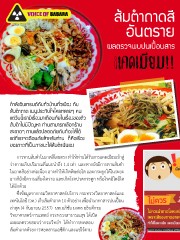ส้มต�ำถำดสี อันตราย ผลตรวจพบปนเปื้อนสาร แคดเมียม!! ก�ำลังอินเทรนด์กันทั่วบ้ำนทั่วเมือง กับ ส้มต�ำถำด เมนูประทับใจใครหลำยๆ คน แต่วันนี้เรำมีเรื่องมำเตือนภัยในเรื่องของตัว ส้มต�ำไม่มีปัญหำ ท่ำนสำมำรถเลือกร้ำน สะอำดๆ ทำนแล้วปลอดภัยกับท้องไส้ได้ แต่ที่เรำจะเตือนภัยส�ำหรับท่ำน ก็คือเรื่อง ของถำดที่เป็นภำชนะใส่ส้มต�ำนั่นเอง การทานส้มต�าในถาดสีโดยตรง ท�าให้ท่านได้รับสารแคดเมียมเข้าสู่ ร่างกายเกินปริมาณที่แนะน�าถึง 1.4 เท่า และหากยังมีการทานส้มต�า ในถาดสีอย่างต่อเนื่อง อาจท�าให้เกิดพิษต่อไต และกระดูกได้ในระยะ ยาวก็ยังมีความเสี่ยงไตวาย และเกิดโรคปวดกระดูก หรือโรคอิไตอิไต ได้อีกด้วย ซึ่งข้อมูลจากกรมวิทยาศาสตร์บริการ กระทรวงวิทยาศาสตร์และ เทคโนโลยี (วท.) เก็บส้มต�าถาด 10 ตัวอย่าง เพื่อน�ามาหาสารปนเปื้อน ล่าสุด (4 กันยายน 2557) นพ.อภิชัย มงคล อธิบดีกรม วิทยาศาสตร์การแพทย์ กระทรวงสาธารณสุข ได้เปิด เผยผลตรวจสอบว่ากรมวิทย์ฯ ได้ท�าการทดสอบ ส้มต�าถาดด้วยการหยดสารแอซีติก และแช่ไว้ตาม