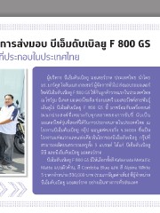 บีเอ็มดับเบิลยู กรุ๊ป ประเทศไทย เริ่มการส่งมอบ บีเอ็มดับเบิลยู F 800 GS รถมอเตอร์ไซค์เอ็นดูโร่ที่ประกอบในประเทศไทย ผู้บริหาร บีเอ็มดับเบิลยู มอเตอร์ราด ประเทศไทย น�าโดย มร. มาร์คุส โจฮันเนส เกลเซอร์ ผู้จัดการทั่วไป ส่งมอบรถมอเตอร์ ไซค์บีเอ็มดับเบิลยู F 800 GS ให้กับลูกค้ารายแรกในประเทศไทย ณ โชว์รูม บีเคเค มอเตอร์ไซเคิล ช่องนนทรี มอเตอร์ไซค์สายพันธุ์ เอ็นดูโร่ บีเอ็มดับเบิลยู F 800 GS นี้ มาพร้อมกับเครื่องยนต์ อเนกประสงค์ที่เหมาะกับทุกสภาพของการขับขี่ นับเป็น มอเตอร์ไซค์รุ่นที่สองที่ได้รับการประกอบภายในประเทศไทย ณ โรงงานบีเอ็มดับเบิลยู กรุ๊ป แมนูแฟคเจอริ่ง จ.ระยอง ซึ่งเป็น โรงงานแห่งแรกและแห่งเดียวในโลกของบีเอ็มดับเบิลยู กรุ๊ปที่ สามารถผลิตยนตรกรรมหรูทั้ง 3 แบรนด์ ได้แก่ บีเอ็มดับเบิลยู มินิ และบีเอ็มดับเบิลยู มอเตอร์ราด บีเอ็มดับเบิลยู F 800 GS มีให้เลือกทั้งสี Kalamata Metallic Matte แบบผิวด้าน, สี Cordoba Blue และ สี Alpine White 3 ราคาจ�าหน่าย 530,000 บาท (รวมภาษีมูลค่าเพิ่ม) ที่ผู้จ�าหน่าย บีเอ็มดับเบิลยู มอเตอร์ราด อย่างเป็นทางการทั่วประเทศ
