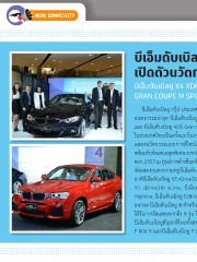 บีเอ็มดับเบิลยู กรุ๊ป ประเทศไทย เปิดตัวนวัตกรรมใหม่ล่าสุด บีเอ็มดับเบิลยู X4 XDRIVE20D M SPORT และ บีเอ็มดับเบิลยู 420I GRAN COUPE M SPORT โฉมใหม่ในงาน BMW XPO 2014 บีเอ็มดับเบิลยู กรุ๊ป ประเทศไทย เปิดตัวนวัตกรรมแห่ง ยนตรกรรมล่าสุด บีเอ็มดับเบิลยู X4 xDrive20d M Sport และ บีเอ็มดับเบิลยู 420i Gran Coupe M Sport ที่เปิดตัว ในประเทศไทยเป็นครั้งแรกในงาน BMW Xpo 2014 ซึ่งจัด แสดงนวัตกรรมและการดีไซน์แห่งยนตรกรรม ระดับหรู พร้อมรับข้อเสนอสุดพิเศษ ระหว่างวันที่ 11 ถึง 14 กันยายน พ.ศ. 2557 ณ ศูนย์การค้าเซ็นทรัลเวิลด์ นอกจากนี้ ยังมีการ จัดแสดงยนตรกรรมหรูบีเอ็มดับเบิลยูรุ่นอื่นๆ รวม 11 รุ่น อาทิบีเอ็มดับเบิลยู X5 xDrive30d M Sport, บีเอ็มดับเบิลยู X1 sDrive18i xLine, บีเอ็มดับเบิลยู X3 xDrive20d Highline, บีเอ็มดับเบิลยู 528i M Sport และนวัตกรรมแห่ง อนาคต บีเอ็มดับเบิลยู i8 ส�าหรับบีเอ็มดับเบิลยู มอเตอร์ราด ได้รับการจัดแสดงมากถึง 8 รุ่น ในจ�านวนนี้รวมมอเตอร์ไซค์ บีเอ็มดับเบิลยูสัญชาติไทยทั้งสองรุ่นได้แก่ บีเอ็มดับเบิลยู F 800 R และบีเอ็มดับเบิลยู F 800 GS