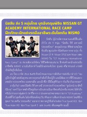 นิสสัน ส่ง 5 หนุ่มไทย บุกอังกฤษพิชิต NISSAN GT ACADEMY INTERNATIONAL RACE CAMP ฝึกทักษะนักแข่งรถมืออาชีพระดับโลกทีม NISMO นิสสัน ผู้น�านวัตกรรมยานยนต์ที่ตื่นเต้น เร้าใจ ส่ง 5 หนุ่ม “นิสสัน จีที อคาเดมี ประเทศไทย” ตะลุยอังกฤษ พิชิตด่านหฤโหด ขับเคี่ยวซูเปอร์คาร์นิสสันหลากหลายรุ่น ทั้ง Nissan GT-R Nissan 370Z และ Nisan Juke NISMO ใน “GT Academy International Race Camp” ณ สนามซิลเวอร์สโตน ใช้ชีวิตติดขอบสนาม ฝึกฝนทักษะนักแข่งรถมือ อาชีพทีม NISMO นานนับสัปดาห์ โดยมีนักแข่งระดับโลก คุณต่อ ศรีอาชวนนท์ เกรฟส์ เป็นโค้ชคู่ใจทีมไทย มร. ร็อบ บาร์ฟ (Rob Barff) หัวหน้าคณะกรรมการตัดสินการแข่งขัน กล่าวว่า “ผม ภูมิใจกับผู้เข้าแข่งขันทุกคน เพราะทุกคนท�าเต็มที่ เรียนรู้เร็ว และมีพัฒนาการที่ดี โดยเฉพาะ แชมป์จากประเทศไทย ออสเตรเลีย และเม็กซิโก มีฝีมือสูสีกันมาก ขับเคี่ยวกันมาตลอด” มาลุ้นกันว่า แชมป์นิสสัน จีที อคาเดมี 2014 ประจ�าประเทศไทย “ฐนโรจน์ ธนาสิทธิ์ นิธิเกตุ” จะคว้าโอกาสพลิกชีวิตสู่เส้นทางนักแข่งรถมืออาชีพระดับโลกทีม NISMO ได้ส�าเร็จ หรือไม่ ท่ามกลางคู่แข่งกว่า 30 ชีวิต จาก 5 ประเทศ อย่าพลาดชม! รายการ “GT Academy” เรียลลิตี้ โชว์ สุดตื่นเต้น ไฮไลท์ช็อตเด็ดทุกวินาทีของการเฟ้นหานักแข่ง NISMO โดยพิธีกร สุดเท่ “เจ เจตริน วรรธนะสิน” ออกอากาศทางทรูวิชั่นส์ ผ่านช่อง True Sport HD1 ช่อง True Asian HD ช่อง True Sport 3 และ true4U เดือนพฤศจิกายนนี้!