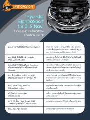 Hyundai ElantraSport 1.8 GLS Navi ซึ่งเป็นรุ่นสูงสุด มาพร้อมอุปกรณ์ ระดับพรีเมี่ยมมากมาย ระบบพวงมาลัยอัจฉริยะ Flex Steer System ปรับระดับความหนักของพวงมาลัยได้ 3 ระดับ ในระหว่าง การขับขี่เพื่อความลงตัวเบาสบายแบบ Comfort, มาตรฐาน แบบ Normal และอารมณ์ที่แตกต่างแบบ Sport ระบบไฟหน้าอัตโนมัติ HID projector ออกแบบใหม่สไตล์สปอร์ต มีฟังค์ชั่นเปิด/ปิด ไฟอัตโนมัติ พร้อม LED light guide และหน่วงเวลาปิดแบบ escort light ระบบปรับอากาศอัตโนมัติแบบ Dual Zone ระบบปรับอากาศที่เหนือระดับอย่างแท้จริง สะดวกสบาย พร้อมช่องแอร์หลัง และเครื่องฟอกอากาศ เทียบเท่ารถยนต์ในคลาสที่ใหญ่กว่า สามารถปรับตั้งอุณหภูมิ Clean Air แยกซ้าย/ขวา ตามความพอใจ ระบบรักษาเสถียรภาพ ESP และ VSM ระบบ VSM และ HAC เป็นระบบที่มีใช้งานในรถราคาสูง พร้อมระบบช่วยออกตัวทางลาดชัน HAC กว่าเพื่อความปลอดภัยในการเกาะถนน และบังคับควบคุม ที่เหนือกว่า ระบบ Smart Entry และระบบ สัญลักษณ์ของความทันสมัย และสะดวกสบายในการขับขี่ Button Start System ทั้งยุคนี้และยุคหน้า หน้าปัดแบบ Supervision เหนือกว่ารถยนต์ระดับเดียวกัน ด้วยจอแสดงผลแบบ OLED พร้อมจอแสดงผล คมชัด และสบายตา ขนาด 3.5 นิ้ว ความคมชัดระดับ OLED อุปกรณ์อ�านวยความสะดวกที่มีประโยชน์ในการเดินทางไกล ระบบควบคุมความเร็ว Cruise Control ระบบ Auto Rain Sensor อุปกรณ์มาตรฐานส�าหรับรถยนต์ระดับพรีเมี่ยม