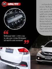 ออกไปลองขับกันบ้างดีกว่า All-New Honda Mobilio ใช้เครื่องยนต์ SOHC i-VTEC 4 สูบ 16 วาล์ว ขนาด 1.5 ลิตร ให้กําลังสูงสุด 120 แรงม้าที่ 6,600 รอบต่อนาที ด้วยแรงบิดสูงสุดที่ 145 นิวตัน- เมตรที่ 4,600 รอบต่อนาที พร้อมระบบส่งกําลังแบบ อัตโนมัติ CVT ใหม่ ที่ได้รับการพัฒนาภายใต้ Earth Dreams Technology อารมณ์แรกๆ ที่ผมได้สัมผัส ต้องบอกว่าคล้ายกับ Honda Amaze มาก หากขับ ออกไปไม่มองด้านหลังว่ามีเบาะเพิ่มขึ้นมาต้องนึกว่า เป็น Honda Amaze แน่ๆ แม้จะมีเครื่องยนต์บล็อคที่ ใหญ่กว่า แต่นํ้าหนักตัวรถก็มีมากกว่าด้วยเช่นกัน อย่าง Honda Amaze มี 90 แรงม้า นํ้าหนักตัวรถ 950 กก. ใช้เครื่องยนต์ SOHC i-VTEC 4 สูบ 16 วาล์ว ขนาด 1.5 ลิตร ให้ก�าลังสูงสุด 120 แรงม้าที่ 6,600 รอบต่อนาที