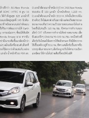 ออกไปลองขับกันบ้างดีกว่า All-New Honda (1 แรงม้าต้องแบกนํ้าหนัก 10.5 กก. ) All-New Honda Mobilio ใช้เครื่องยนต์ SOHC i-VTEC 4 สูบ 16 Mobilio มี 120 แรงม้า นํ้าหนักตัวรถ 1,223 กก. วาล์ว ขนาด 1.5 ลิตร ให้กําลังสูงสุด 120 แรงม้าที่ (1 แรงม้าต้องแบกนํ้าหนัก 10.1 กก. ) ดังนั้นอัตราเร่งใน 6,600 รอบต่อนาที ด้วยแรงบิดสูงสุดที่ 145 นิวตัน- ช่วงต้นๆ จึงไม่แตกต่างกันมากนัก แต่พอรีดสมรรถนะ เมตรที่ 4,600 รอบต่อนาที พร้อมระบบส่งกําลังแบบ ออกมาจะเห็นว่าความเร็วปลายตอบสนองได้อย่าง อัตโนมัติ CVT ใหม่ ที่ได้รับการพัฒนาภายใต้ Earth ไหลลื่นไปจนถึง 165 กม./ชม. จังหวะการทํางานของ Dreams Technology อารมณ์แรกๆ ที่ผมได้สัมผัส เกียร์ CVT ปรับทดการทํางานได้อย่างเหมาะสม เมื่อ ต้องบอกว่าคล้ายกับ Honda Amaze มาก หากขับ ขับแบบชิวๆ ประมาณ 90-100 กม./ชม. จะเป็นช่วงที่ ออกไปไม่มองด้านหลังว่ามีเบาะเพิ่มขึ้นมาต้องนึกว่า เกียร์ปรับโหมดให้ลดการใช้พลังงานลง จึงมีอัตราการ เป็น Honda Amaze แน่ๆ แม้จะมีเครื่องยนต์บล็อคที่ ใช้เชื้อเพลิง อยู่ที่ 16.6 กม./ลิตร แต่เมื่อขับขึ้นเขาหรือ ใหญ่กว่า แต่นํ้าหนักตัวรถก็มีมากกว่าด้วยเช่นกัน อย่าง บรรทุกสัมภาระมากๆ เกียร์จะถูกปรับให้สามารถเรียก Honda Amaze มี 90 แรงม้า นํ้าหนักตัวรถ 950 กก. แรงบิดมาใช้งานได้อย่างเต็มที่โดยอัตโนมัติ