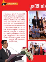 มูลนิธิโตโยต้ามอบทุนประจ�าปี 2557 นายประมนต์ สุธีวงศ์ ประธานมูลนิธิ โตโยต้าประเทศไทย พร้อมด้วยคณะ กรรมการมูลนิธิฯ และผู้บริหารระดับสูง จากบริษัท โตโยต้า มอเตอร์ ประเทศไทย จ�ากัด เข้าร่วมการมอบทุนสนับสนุน ประจ�าปีพ.ศ. 2557 แก่องค์กรสาธารณ กุศลและสถาบันการศึกษา 12 โครงการ จาก 10 องค์กร รวมมูลค่ากว่า 20 ล้าน บาท เพื่อร่วมส่งเสริมด้านการศึกษา แก่เด็กที่ขาดแคลนโอกาส และพัฒนา คุณภาพชีวิต เพื่อให้สังคมไทยเป็น สังคมที่เข้มแข็งและเติบโตอย่างยั่งยืน เมื่อวันศุกร์ที่ 10 ตุลาคม 2557 ณ ห้อง ลอนดอน 3 โรงแรมพลาซ่า แอทธินี ถ.วิทยุ