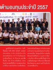 มูลนิธิโตโยต้ามอบทุนประจ�าปี 2557 มูลนิธิโตโยต้าประเทศไทย ก่อตั้ง โดยมอบเงินสนับสนุนการด�าเนินงานของ ขึ้นในโอกาสที่ บริษัท โตโยต้า มอเตอร์ องค์กรสาธารณกุศลเป็นประจ�าทุกปีมา ประเทศไทย จ�ากัด ด�าเนินกิจการใน อย่างต่อเนื่อง โดยมุ่งเน้นในการส่งเสริม ประเทศไทยครบ 30 ปี ด้วยเงินทุนจด สังคมอย่างยั่งยืนผ่าน 3 แนวทาง ได้แก่ ทะเบียนเริ่มแรก 30 ล้านบาท และเพิ่ม • ส่งเสริมการศึกษาแก่เด็กที่อยู่ห่างไกล ขึ้นเป็น 400 ล้านบาทในปีพ.ศ. 2546 รวมถึงสนับสนุนการศึกษาประวัติศาสตร์ โดยน�าดอกผลที่ได้รับจากทุนจดทะเบียน ศิลปวัฒนธรรม และความเข้าใจเกี่ยวกับ มาใช้ในการด�าเนินกิจกรรมเพื่อสังคม ประเทศเพื่อนบ้าน