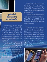 และการเปิด Location Service หาก ไม่จ�าเป็นก็ไม่ควรท�า ควรปิด GPS และ ต้องศึกษาวิธีการปิดตาม OS ของโทรศัพท์ เครื่องที่ใช้ เพราะแต่ละแพลตฟอร์มมี ความแตกต่างกัน อุดช่องโหว่ การได้รับของขวัญเป็นโทรศัพท์ก็มี ใช้สมาร์ทโฟน ความเสี่ยง เพราะอาจมีการลงโปรแกรม อย่างปลอดภัย ไว้แล้วก็ได้ สามารถท�าได้ทั้งการดักฟัง โทรศัพท์ ตรวจสอบเรื่องชู้สาว ตรวจสอบ การฉ้อโกงพนักงาน อาจารย์ปริญญา กล่าวว่า “ข้อมูล ส่วนตัว (Data privacy) เป็นสิ่งส�าคัญ ทั้งนี้หากต้องการจะเช็กเครื่องท�าได้ เราได้ประโยชน์จากเทคโนโลยีใหม่ๆ ที่ เช่น iPhone มีการเจลเบรกหรือเปล่า แบรนด์ต่างๆ พัฒนามาให้ แต่อย่างไร ให้ Search ค�าว่า Cydia หรือ Installus ก็ตามเราก็ก�าลังถูกละเมิดความเป็นส่วน คือการเปิดระบบให้สามารถลงโปรแกรม ตัว พฤติกรรมของเรา ข้อมูลของเรา การ โจรได้ทันที ไม่มีการป้องกัน ส�าหรับกรณี ใช้ชีวิตในปัจจุบันจึงต้องระมัดระวัง ต้อง Android ให้เข้าไปที่ Setting ตรวจสอบ เล่นให้เป็น” Security และปิด unknown Source ส�าคัญที่สุดคือ โทรศัพท์ของเรามี เพื่อป้องกันการลงโปรแกรมที่ไม่น่า การตั้ง Password หรือยัง เพราะหากมี ไว้วางใจ เป็นต้น คนประสงค์ร้าย เครื่องที่ไม่ได้ตั้ง Pass- word สามารถลงโปรแกรมโจรได้ภายใน 5 นาทีเท่านั้น การทิ้งโทรศัพท์โดยไม่ได้ ตั้ง Password จึงไม่ปลอดภัย หรือการ เช็คอินสถานที่ต่างๆ
