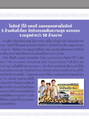 ไฮลักซ์ วีโก้ แชมป์ ฉลองยอดขายไฮลักซ์ 5 ล้านคันทั่วโลก จัดกิจกรรมคืนความสุข แจกทอง รวมมูลค่ากว่า 50 ล้านบาท นายวุฒิกร สุริยะฉันทนานนท์ ผู้ช่วยกรรมการผู้จัดการใหญ่อาวุโส เปิดเผยถึงการจัด กิจกรรม “ไฮลักซ์ วีโก้ แชมป์ ฉลองยอดขายไฮลักซ์ 5 ล้านคันทั่วโลก คืนความสุข แจกทอง 50 ล้านบาท” เพื่อเป็นการขอบคุณลูกค้าผู้มีอุปการคุณ และร่วมเฉลิมฉลองความส�าเร็จใน โอกาสที่รถกระบะ ไฮลักซ์ มียอดจ�าหน่ายสะสมทั่วโลก ครบ 5 ล้านคัน บริษัท โตโยต้า มอเตอร์ ประเทศไทย จ�ากัด แนะน�ารถกระบะ ไฮลักซ์ วีโก้ ภายใต้ โครงการ “IMV: Innovative International Multi Purpose Vehicle” ในปี 2547 และ สร้างปรากฏการณ์ใหม่ให้กับตลาดรถกระบะ 1 ตัน ด้วยการตอบรับอย่างดีจากลูกค้าทั้งใน ประเทศและต่างประเทศ โดยมียอดจ�าหน่ายสะสมภายในประเทศเป็นจ�านวนทั้งสิ้น 1,560,554 คัน* ครองอันดับ 1 ในตลาดรถกระบะ 8 ปีซ้อน และมียอดจ�าหน่ายสะสมทั่วโลก จาก 172 ประเทศ รวมจ�านวนทั้งสิ้น 5,174,635 คัน** ถือเป็นรถยนต์ที่ลูกค้า ทั่วโลกต่างให้การยอมรับในเรื่องของ สมรรถนะการขับขี่ ความประหยัดน�้ามัน ประโยชน์ใช้สอย ความทนทาน จนเป็น รถที่ได้รับความนิยมทั้งในประเทศและ ต่างประเทศทั่วโลก