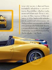 Ferrari 458 Speciale A เพิ่มความเร้าใจแบบ สปอร์ตเต็มขั้น พร้อมตัวอักษร A มาจากค�าว่า Aperta ซึ่งถูกผลิตขึ้นมา เพื่อเป็นการเฉลิม ฉลองความส�าเร็จในสนามแข่ง ทั้งรายการ WEC, Le Mans 24 ชั่วโมง, Daytona 24 ชั่วโมง และ Sebring 12 ชั่วโมง โดยตัวรถจะมีการผลิตเพียง 499 คัน และยึดโครงสร้างเปิดประทุนของ 458 เป็นต้นแบบ เน้นความงดงามของหลังคาแข็งที่ผลิต จากอะลูมิเนียมแบบพับเก็บได้ด้วยไฟฟ้า ใช้เวลาใน การกางออกหรือพับเก็บเพียง 14 วินาที และลด น�้าหนักจากโฉม Speciale ที่เป็นตัวถังคูเป้ลงถึง 50 กิโลกรัม เหลือเพียง 1,340 กิโลกรัม