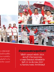 ส�าหรับการแข่งขัน รถยนต์ทางเรียบระดับนานาชาติ บุรีรัมย์ ยูไนเต็ด ซุปเปอร์ จีที 2014 บริษัท โตโยต้า ห้ามพลาดสนามสุดท้าย!!! มอเตอร์ ประเทศไทย จ�ากัด ได้ส่งทีมแข่งของคนไทยในนาม โตโยต้า ทีม ไทยแลนด์ โดยมีนักแข่งฝีมือ โตโยต้า มอเตอร์ สปอร์ต 2014 เยี่ยมอย่าง “ณัฐวุฒิ เจริญสุขวัฒนะ” และ “ทาเคชิ ซึจิย่า” พร้อมรถโตโยต้า 86 เข้าร่วมการแข่งขันใน สนามที่ 5 ในงานมหกรรม รุ่น จีที 300 โดยท�าเวลาในรอบคัดเลือกเข้ามาเป็นอันดับ 22 และท�าผลงานได้ดีที่สุดในอันดับที่ 14 ใน บางแสน ไทยแลนด์ สปีดเฟสติวัล รอบชิงชนะเลิศ ซึ่งอยู่ในระดับที่น่าพอใจ และน�าความภาคภูมิใจมาให้คนไทย ในฐานะนักกีฬา มอเตอร์ วันที่ 13-14 ธันวาคม 2557 สปอร์ต ไทย ในสนามแข่งขันระดับสากล ณ ริมหาดบางแสน จังหวัดชลบุรี