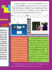 ขณะเดียวกัน Windows 10 ยังรองรับระบบใหม่ที่เรียกว่า Snap Assist ที่จะช่วยให้ผู้ใช้งานแบบ Multiple Desktop สามารถท�างาน ได้ต่อเนื่องไม่มีสะดุด ส่วนผู้ที่ต้องใช้งานระบบสัมผัสเป็นหลักก็ไม่ต้อง กังวล เพราะ Windows 10 ยังคงได้รับการออกแบบมาเพื่อรองรับ การท�างานด้วยระบบสัมผัสเช่นเดียวกับใน Windows 8 ซึ่งวางรูปแบบให้สามารถรองรับการใช้งานกับทุกอุปกรณ์ และใช้ Store เดียวกัน ได้ทุกแพลตฟอร์ม การเปลี่ยนแปลงที่เกิดขึ้นกับ Windows 10 ที่ชัดเจนก็ คือ การกลับมาของปุ่ม Start Menu พร้อมกับอินเตอร์เฟซ Notifications ภายในแบบใหม่ ซึ่งทาง Microsoft ได้ จุดประสงค์หลักที่ทาง Microsoft ที่ไปดึงมาจากของ Windows ปล่อย Windows 10 เวอร์ชั่น ต้องการก็คือ ให้คุณส่ง Feedback Phone นอกจากนี้แอปที่เป็น ทดสอบส�าหรับคอมพิวเตอร์ กลับไปว่าเจอปัญหาอะไรบ้างจาก ของ Windows 8 Metro ก็ หรือ Technical Preview การใช้งาน Windows 10 Technical จะสามารถเปิดใช้งานแบบเป็น ให้กับผู้ใช้งานในกลุ่มแรกได้ Preview เพื่อที่จะได้น�าไปปรับปรุง หน้าต่างได้แล้ว ท�าให้ไม่ต้องเสีย ทดลองใช้งานกันตั้งแต่ช่วง เวอร์ชั่นเต็มให้มันสมบูรณ์ที่สุด ซึ่ง พื้นที่เต็มหน้าจอเหมือนอย่าง ต้นเดือนตุลาคม ที่ผ่านมา ระบบปฏิบัติการ Windows 10 แต่ก่อน รวมไปจนถึงระบบ ส่วน Windows 10 เวอร์ชั่น Technical Preview จะสามารถใช้ Task View ที่เปรียบเสมือน ส�าหรับคนใช้งานทั่วไปจะมี งานได้ถึงวันที่ 15 เมษายน 2015 มี กับการพรีวิวแต่ละโปรแกรมที่ การเผยโฉมอีกครั้งในช่วงต้น ให้เลือกสามภาษาหลัก คือ อังกฤษ, เปิดใช้งานด้วย ปี 2015 จีนกลาง และโปรตุเกส ส�าหรับผู้ที่สนใจอยากจะทดลอง Windows 10 ว่าเป็นอย่างไร สามารถ คลิกดาวน์โหลดได้ที่เว็บไซต์ Preview.windows.com ค่ะ