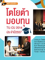 โตโยต้า มอบทุน TU-CU 2014 ประจ�าปี2557 นายนินนาท ไชยธีรภิญโญ รองประธานกรรมการ บริษัท โตโยต้า มอเตอร์ ประเทศไทย จ�ากัด เป็น ประธานในพิธีมอบทุนการศึกษาประจ�าปี พ.ศ. 2557 แก่นักศึกษามหาวิทยาลัยธรรมศาสตร์ โดยมี อธิการบดี ศ.ดร.สมคิด เลิศไพฑูรย์ พร้อมคณะผู้บริหารระดับสูง และคณาจารย์ ร่วมแสดงความ ยินดี ที่ห้องประชุมสัญญาธรรมศักดิ์ มหาวิทยาลัยธรรมศาสตร์ ท่าพระจันทร์ รวมทั้งมอบทุนแก่ นิสิตจุฬาลงกรณ์มหาวิทยาลัย โดยมีอธิการบดี ศาสตราจารย์ นพ. ภิรมย์ กมลรัตนกุล พร้อมคณะ ผู้บริหารระดับสูง และคณาจารย์ร่วมแสดงความยินดี เมื่อวันที่ 5 พฤศจิกายน 2557 ณ อาคาร จามจุรี 4 ห้องประชุม 202 จุฬาลงกรณ์มหาวิทยาลัย