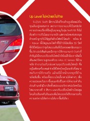 Up Level ไฟหน้าและไฟท้าย SUZUKI Swift มีความได้เปรียบด้านรูปลักษณ์เป็น ทุนเดิมอยู่พอสมควร เพราะการออกแบบที่เป็นสปอร์ต ความปราดเปรียวที่มีอยู่ในทุกอณู ในรุ่น Swift RX จึงไม่ ต้องท�าการปรับโฉมมากมายนัก แต่ความโดดเด่นของมุม ด้านหน้าถูกปรับให้ดูดุดันด้วยไฟหน้าโคมด�า พร้อม Bi – Xenon ทั้งไฟสูงและไฟต�่าที่ใช้ก�าลังไฟเพียง 35 วัตต์ ซึ่งใช้ไฟน้อยกว่าชุดไฟแบบเดิมที่เป็นหลอดฮาโลเจนมาก ขึ้น 30 เปอร์เซ็นต์ และมีอายุการใช้งานนานกว่า 3 เท่า ที่ ส�าคัญยังมีระบบปรับระดับไฟหน้าอัตโนมัติ ด้วยการติดตั้ง เซ็นเซอร์วัดความสูงของตัวรถ HALL IC Sensor ที่ด้าน หลัง ท�างานร่วมกับกล่องควบคุมปรับระดับไฟหน้า ซึ่ง อยู่ในห้องเครื่องยนต์ ช่วยให้ไฟหน้าอยู่ในระดับที่เหมาะ สมกับการใช้งานจริง แม้จะมีน�้าหนักบรรทุกที่ด้าน หลังเพิ่มขึ้น พร้อมทั้งระบบไฟเลี้ยวตามโค้งต่างๆ เพื่อ ความปลอดภัยมากขึ้นขณะขับขี่ในทางโค้งยามค�่าคืน ส่วนด้านหลังมีการติดตั้งสปอยเลอร์ทรงสปอร์ตพร้อม ไฟเบรกดวงที่ 3 สีขาว และปรับเปลี่ยนไฟท้ายใหม่คุม โทนด้วยสีแดงทับทิมและเพิ่มไฟถอยหลังสีขาวยกระดับ ความสง่างามให้สง่างามได้มากขึ้นทีเดียว