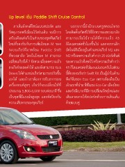 Up level เติม Paddle Shift Cruise Control ภายในยังคงดีไซน์แบบสปอร์ต และ นอกจากนี้ยังมีระบบครูสคอนโทรล วัสดุเกรดพรีเมี่ยมไว้เช่นเดิม จะมีการ โดยติดตั้งสวิตช์ไว้ที่ฝั่งขวาของพวงมาลัย เสริมเติมแต่งก็เป็นส่วนของชุดคันเกียร์ สามารถเริ่มใช้งานได้ที่ความเร็ว 45 ใหม่ที่รองรับกับการเพิ่มโหมด M ของ กิโลเมตรต่อชั่วโมงขึ้นไป และจะยกเลิก ระบบเกียร์ที่มาพร้อม Paddle Shift อัตโนมัติเมื่ออยู่ในต�าแหน่งเกียร์ M1 และ ที่พวงมาลัย โดยในโหมด M สามารถ M2 หรือลดความเร็วต�่ากว่า 20 เปอร์เซ็นต์ เปลี่ยนเกียร์ได้ 7 จังหวะ เมื่อลดความเร็ว ของความเร็วที่เซตไว้ หรือความเร็วต�่ากว่า ลงเกียร์จะลดต�่าให้ และยังสามารถ Kick 45 กิโลเมตรต่อชั่วโมง แน่นอนครับในส่วน Down ให้ต�าแหน่งเกียร์สามารถปรับขึ้น นี้ต้องยอมรับว่า Swift RX เป็นผู้น�าในด้าน เองได้ และถ้าเราต้องการขับลากรอบ ฟังก์ชั่นของ Eco Car เพราะต้องถือเป็น เครื่องยนต์สูงๆ เกียร์ก็จะเปลี่ยนให้ที่ เจ้าแรกที่น�ามาใช้ในรถ Eco Car เมืองไทย ประมาณ 5,800-6,000 รอบต่อนาที ซึ่ง และยังมีเบาะที่มีการเปลี่ยนวัสดุใหม่และ เป็นจุดที่มีแรงม้าสูงสุด และยังป้องกัน เติมลวดลายให้สปอร์ตด้วยการเดินเส้น ความเสียหายของชุดเกียร์ ด้ายแบบคู่