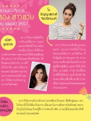 รวมความรักความห่วงใยจาก โบ ดารา นักแสดง สาวสวย ธัญญะสุภำงค์ จิรปรีชำนนท์ ถึงผู้ใช้รถใช้ถนน ตลอดปี 2557 อยากให้ทุกคนมีสติใน อนิสา การขับรถให้มากๆ นะคะ นูกราฮา และอย่าลืมมีน�้าใจบนท้อง อยากให้ทุกคนมีสติอยู่เสมอ ถนนด้วย ไม่อยากให้ขับรถ นะคะ และอยากให้มีน�้าใจบน ปาดซ้ายปาดขวา เพราะจะท�าให้เกิดอุบัติเหตุ ท้องถนนให้มากๆ อย่าใจร้อน ที่ ได้ และอยากฝากถึงมอเตอร์ไซค์ด้วยค่ะ ให้ ส�าคัญต้องเคารพกฎจราจร ความ ขับแบบระมัดระวัง บางทีก็ ประมาทเพียงเล็กน้อยก็น�าเราไป เข้าใจว่ารีบ แต่การขับปาด สู่อุบัติเหตุได้ค่ะ และฝากไว้ส�าหรับ ซอกแซก มันอันตรายมากๆ เรื่อง เมาไม่ขับ ถ้ารู้ว่าวันนี้ต้อง นะ อาจจะโดนชนได้ และ ปาร์ตี้ก็ให้ใช้บริการแท็กซี่ หรือ ติด อยากให้ทุกคนรักษากฎ รถของเพื่อนที่ไม่ดื่มจะดีกว่าค่ะ จราจรกันด้วยค่ะ เพื่อความปลอดภัยของตนเองและ ส่วนรวมนะคะ น�้ำฝน อยากให้ทุกคนขับรถด้วยความระมัดระวังนะคะ มีสติอยู่เสมอ อย่า ณธิดา ใจร้อน มีน�้าใจให้แก่กันมากๆ เผื่อเวลาในการเดินทางกันด้วยค่ะ เพราะ ภัทรชาญไชย ปัจจุบันไปไหนมาไหนรู้สึกว่ารถค่อนข้างติด เราจะได้ไม่หงุดหงิด ถึงที่ หมายอย่างปลอดภัยค่ะ