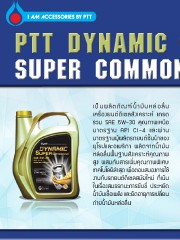 PTT DYNAMIC SUPER COMMONRAIL เป็นผลิตภัณฑ์น�้ำมันหล่อลื่น เครื่องยนต์ดีเซลสังเครำะห์ เกรด รวม SAE 5W-30 คุณภำพเหนือ มำตรฐำน API CI-4 และผ่ำน มำตรฐำนผู้ผลิตรถยนต์ชั้นน�ำของ ยุโรปและอเมริกำ ผลิตจำกน�้ำมัน หล่อลื่นพื้นฐำนสังเครำะห์คุณภำพ สูง ผสมกับสำรเพิ่มคุณภำพพิเศษ เทคโนโลยีล่ำสุด เพื่อตอบสนองกำรใช้ งำนกับรถยนต์ดีเซลสมัยใหม่ ที่เน้น ในเรื่องสมรรถนะกำรขับขี่ ประหยัด น�้ำมันเชื้อเพลิง และยืดอำยุกำรเปลี่ยน ถ่ำยน�้ำมันหล่อลื่น