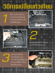 วิธีการเปลี่ยนหัวเทียน 1 เปิดฝากระโปรงหน้าและ คลายฝาครอบเครื่องยนต์ มองหาคอยล์แล้วจัดการดึง สายไฟที่ต่ออยู่ออก 2 คลายน็อตยึดคอยล์ด้วยประแจ จากนั้นก็ดึงตัวคอยล์ออกมา 3 สอดประแจหัวเทียน คลายหัวเทียนออกมา ถ้าหากหัวเทียนไม่ติดออกมา กับประแจใช้คีมปากจิ้งจก ดึงหัวเทียนออกมา