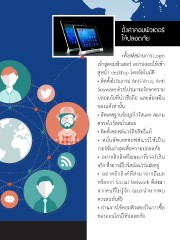 ตั้งค่าคอมพิวเตอร์ ให้ปลอดภัย • ตั้งรหัสผ่านการ Login เข้าสู่คอมพิวเตอร์ อย่าปล่อยให้เข้า สู่หน้า desktop โดยอัตโนมัติ • ติดตั้งโปรแกรม Anti-Virus, Anti Spyware ด้วยโปรแกรมรักษาความ ปลอดภัยที่น่าเชื่อถือ และต้องเป็น ของแท้เท่านั้น • อัพเดตฐานข้อมูลไวรัสและ สแกน ตรวจไวรัสสม�่าเสมอ • ติดตั้งซอฟต์แวร์ลิขสิทธิ์แท้ • หมั่นอัพเดตซอฟต์แวร์ให้เป็น เวอร์ชั่นล่าสุดเพื่อความปลอดภัย • อย่าคลิกลิงค์โฆษณาที่เว่อร์เกิน จริง ซึ่งอาจมีไวรัสมัลแวร์แฝงอยู่ • อย่าคลิกลิงค์ที่ส่งมาจากอีเมล หรือจาก Social Network ที่ส่งมา จากคนที่ไม่รู้จัก (แนะน�าหากพบ ควรลบทันที) • อ่านการใช้คอมพิวเตอร์ในการซื้อ ของออนไลน์ให้ปลอดภัย