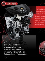 เครื่องยนต์สกายแอคทีฟคลีนดีเซล SKYACTIV-D เจนเนอเรชั่นใหม่ของมาสด้า มีขนาดความจุ 1500 ซีซี มาพร้อมเทอร์โบแปรผันที่มีน�้าหนักเบา เครื่องเดิน เงียบ และคงคุณสมบัติของเครื่องดีเซลที่แข็งแกร่ง ทนทานสูง ดูแลรักษาง่าย มีอัตราส่วนการอัดต�่าเพียง 14.8:1 จึงเผาไหม้สมบูรณ์กว่า ให้ก�าลัง 105 แรงม้า ที่ 4,000 รอบต่อนาที และแรงบิดสูงสุด 250 นิว ตัน-เมตร ที่ 1,500 -2,500 รอบต่อนาที ซึ่งเทียบเท่า ระบบส่งก�าลังเกียร์อัตโนมัติ สกายแอคทีฟ-ไดร์ฟ 6 สปีด ที่รวมเอาจุดแข็งของเกียร์ทุกระบบ เข้าไว้ด้วยกัน ให้อัตราการประหยัด ALL NEW น�้ามันสูงสุดถึง 26.3 กิโลเมตรต่อลิตร MAZDA 2