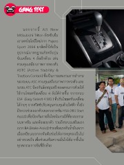 นอกจำกนี้ All New Mitisubishi Triton ยังหยิบยืม เอำเทคโนโลยีใหม่จำก Pajero Sport 2014 มำติดตั้งให้เป็น อุปกรณ์มำตรฐำนส�ำหรับรุ่น ขับเคลื่อน 4 ล้ออีกด้วย เช่น ควบคุมเสถียรภำพกำรทรงตัว ASTC (Active Stability & Traction Control) ซึ่งเป็นกำรผสมรวมกำรท�ำงำน ของระบบ ASC ควบคุมเสถียรภำพกำรทรงตัว และ ระบบ ATC ป้องกันล้อหมุนฟรี ตลอดจนกำรช่วยให้ ใช้งำนโหมดขับเคลื่อน 4 ล้อได้ง่ำยขึ้น จำกระบบ ES4 (Easy Select 4 WD ) ที่ปรับโหมดขับเคลื่อน ได้ง่ำยๆ จำกสวิตซ์ปรับหมุนควบคุมด้วยไฟฟ้ำ ทั้งยัง มีระบบช่วยออกตัวบนทำงลำดชัน HSA (Hill Start Assist) เพื่อป้องกันกำรลื่นไหลในกรณีที่ต้องเบรกรถ บนทำงชัน และต้องออกตัว รวมถึงระบบเสริมแรง เบรก BA (Brake-Assist) ช่วยเพิ่มแรงดันน�้ำมันเบรก เมื่อเหยียบเบรกกะทันหันช่วยให้กำรหยุดรถเป็นไป อย่ำงรวดเร็ว เพื่อช่วยเสริมควำมมั่นใจได้มำกขึ้นใน ทุกสภำวะกำรขับขี่อีกด้วย