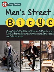Men’s Street Style B i c y c เมื่อพูดถึงเสื้อผ้าที่ต้องใส่ในการขี่จักรยาน เชื่อได้เลยว่า หนุ่มๆ หลายท่านต้องมีภาพ ในหัวเป็นเสื้อผ้ารัดติ้วแบบที่นักกีฬาจักรยานสวมใส่กัน หรือต้องเป็นชุดเสื้อผ้าส�าหรับ ออกก�าลังกาย เท่านั้น