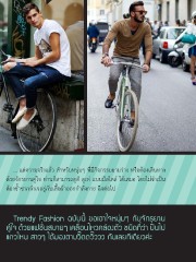 ... แต่ความจริงแล้ว ส�าหรับหนุ่มๆ ที่มีกิจกรรมยามว่าง หรือต้องเดินทาง ด้วยจักรยานคู่ใจ ท่านก็สามารถดูดี ดูเท่ แบบมีสไตล์ ได้เสมอ โดยไม่จ�าเป็น ต้องซ�้าซากจ�าเจอยู่กับเสื้อผ้าออกก�าลังกาย อีกต่อไป Trendy Fashion ฉบับนี้ ขอเอาใจหนุ่มๆ กับจักรยาน คู่ใจ ด้วยแฟชั่นสบายๆ เคลื่อนไหวคล่องตัว ชนิดที่ว่า ปั่นไป แถวไหน สาวๆ ได้มองตามวี๊ดดวิ๊ววว กันเลยทีเดียวค่ะ