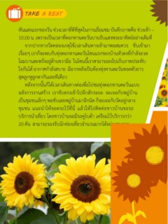 ทันแสงแรกของวัน ช่วงเวลาที่ดีที่สุดในการเยี่ยมชม บันทึกภาพคือ ช่วงเช้า – 10.00 น. เพราะเป็นเวลาที่ดอกทานตะวันบานรับแสงพระอาทิตย์อย่างเต็มที่ จากปากทางวัดคลองเกตุใช้เวลาเดินทางเข้ามาพอสมควร ขับเข้ามา เรื่อยๆ เราก็จะพบกับทุ่งดอกทานตะวันโซนแรกของบ้านหัวดงที่ก�าลังอวด โฉมบานสะพรั่งอยู่ด้านขวามือ ในโซนนี้เราสามารถลงไปเก็บภาพประทับ ใจกันได้ อากาศก�าลังสบาย มีฉากหลังเป็นท้องทุ่งทานตะวันทอดตัวยาว สุดลูกหูลูกตากันเลยทีเดียว หลังจากนั้นก็ได้เวลาเดินทางต่อเพื่อไปชมทุ่งดอกทานตะวันแบบ อลังการงานสร้าง เราขับตรงเข้าไปอีกสักระยะ จะเจอกับหมู่บ้าน เป็นชุมชนเล็กๆ พอขับเลยหมู่บ้านมาอีกนิด ก็จะเจอกับวัดอยู่กลาง ชุมชน แนะน�าให้จอดรถไว้ที่นี่ แล้วให้ไปติดต่อชาวบ้านขอรถ บริการน�าเที่ยว โดยชาวบ้านจะมีรถคูโบต้า เตรียมไว้บริการกว่า 20 คัน สามารถรองรับนักท่องเที่ยวจ�านวนมากได้อย่างสบายๆ ทีนี้ก็ได้เวลาแวนซ์ โดยรถคูโบต้ากันล่ะคะ ระหว่างทางก็ต้องทุลักทุเลกันเล็กน้อย เพราะถนนหนทางยังไม่ได้ลาดยาง ยังคงเป็นดินลูกรัง มีหลุมมีบ่อให้รถได้ กระเด้งกระดอนบ้างเป็นปรกติของบรรยากาศการชมทุ่ง ยิ่งแสงอาทิตย์ที่ทาบทอส่องสว่างมากขึ้นเท่าไหร่ แสงสีเหลืองอร่าม จากท้องทุ่งที่เรียกกันว่าสุดลูกหูลูกตา ก็ปรากฏโฉมเบื้องหน้าเรา มองไป ทางไหนก็ตระการตาไปด้วยทุ่งดอกทานตะวันที่แข่งกันบานชูช่อรอรับแสง อาทิตย์ ท่ามกลางขุนเขาน้อยใหญ่ที่โดดเด่นเป็นพื้นฉากด้านหลัง สวยงาม สมค�าร�่าลือ… ในหนึ่งปีความสวยงามเหล่านี้จะผลิบานให้ท่านได้สัมผัสเพียงหนึ่งเดียว เท่านั้น ดังนั้นจึงอยากเชิญชวนท่านมาสัมผัสด้วยตัวเอง แล้วท่านจะเข้าใจค�าว่า "ดังต้องมนต์ตา ถูกสะกดให้หลงใหล รักจนถอนตัวไม่ขึ้นนั้น" เป็นเช่นไร ......