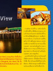 บางกอกซีวิว Bangkok Sea View การเดินทางไปที่ร้าน จะต้องนั่งเรือ จากฝั่งไปที่ร้าน ซึ่งใช้เวลาประมาณ 30 นาที ช่วงเวลาในระหว่างนั่งเรือไปที่ร้าน เราก็ยังจะได้สัมผัสวิวสวยๆ ของผืนป่า ชายเลนเขียวๆ บ้านเรือนชาวเลสีสัน สดใส ตัวร้านตั้งอยู่กลางทะเล แทบไม่ น่าเชื่อว่าเราจะเห็นร้านอาหารแบบนี้ใน กรุงเทพฯ เพราะส่วนใหญ่ถ้าเราอยาก สัมผัสบรรยากาศแบบนี้ก็ต้องไปแถว สมุทรสงคราม หรือเพชรบุรี แต่นี่อยู่ใน กรุงเทพฯ แค่บางขุนเทียน บางกอก ซีวิว (Bangkok Sea View) บางขุนเทียน ถือเป็นร้าน และเมื่อไปถึงร้านก็สามารถจับจองที่ อาหารที่ขึ้นชื่อว่า โรแมนติกที่สุดแห่งหนึ่งในกรุงเทพฯ ด้วยความ นั่งได้ตามสะดวก มีให้เลือกทั้งแบบนั่ง เป็นเอกลักษณ์ที่แตกต่างจากร้านอาหารทะเลทั่วๆ ไป… เพราะร้านบางกอก ซีวิว (Bangkok Sea View) นั้น ตั้ง กับพื้น ซึ่งทางร้านแบ่งพื้นที่ไว้อย่างเป็น อยู่กลางน�้าทะเลอ่าวไทย บริเวณที่เรียกว่า “จุดชมวิวทะเลกรุงเทพฯ” ซึ่งแต่เดิมตรงนี้เคยเป็นผืนดินมาก่อน แต่ สัดส่วน หรือถ้ากระดูกกระเดี้ยวไม่ไหว โดนกัดเซาะจากธรรมชาติไปเรื่อยๆ จนพื้นดินรอบข้างหายไปและกลายเป็นผืนน�้าทะเลแทน จะนั่งแบบโต๊ะอาหารทั่วไปก็ไม่ว่ากัน