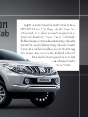 MITSUBISHI Triton มิตซูบิชิ มอเตอร์ส ประเทศไทย เปิดตัวรถยนต์ All New Mega cab & Single Cab MITSUBISHI Triton 2 รุ่น Mega cab และ Single Cab เสริมความแข็งแกร่ง เพื่อความปลอดภัยของผู้โดยสารด้วย โครงสร้างนิรภัยเหล็กกล้า “Super Frame” รวมไปถึงเพิ่ม พื้นที่ในการบรรทุก ภายนอกแข็งแกร่ง สปอตหรู ภายในกว้าง สะดวกสบาย และเงียบ ให้พละก�าลังสูง 181 แรงม้า ประหยัด น�้ามันถึง 20 เปอร์เซ็นต์ ด้วยเครื่องยนต์ไมเวค คลีนดีเซล อัลลู มินั่ม อัลลอย บล็อค ขนาด 2.4 ลิตร อีกทั้งยังมี เครื่องยนต์ ดีเซล เทอร์โบ อินเตอร์คูลเลอร์ ขนาด 2.5 ลิตร และเครื่องยนต์เบนซิน ขนาด 2.4 ลิตร