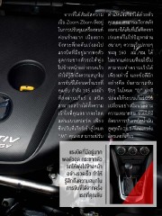 จากที่ได้สัมผัสความ ต�าแหน่งเกียร์ได้ด้วยตัว เป็น Zoom Zoom ยังอยู่ คุณเอง สามารถเรียกพลัง ในการปรับจูนเครื่องยนต์ ออกมาได้เต็มที่เมื่อคิดจาก ค่อนข้างมาก เนื่องจาก เร่งแซงก็ไม่ใช่ปัญหาผ่าน จังหวะที่กดคันเร่งลงไป สบายๆ ความเร็วปลายๆ แรงบิดที่มีอยู่มากพอตัว ทะลุ 160 กม./ชม. ได้ ฉุดกระชากตัวรถให้พุ่ง ไม่ยากแต่ถนนที่ผมใช้ไม่ ไปข้างหน้าอย่างรวดเร็ว สามารถท�าความเร็วได้ ท�าให้รู้สึกถึงความสนุกใน เพียงเท่านี้ และข้อดีอีก การขับขี่ได้จากครั้งแรกที่ อย่างคือ ยังสามารถขับ คุณขับ ก�าลัง 105 แรงม้า ชิวๆ ในโหมด “D” ปกติ ที่ส่งผ่านเกียร์ 6 สปีด ปล่อยให้ระบบเกียร์ปรับ สามารถสร้างได้ทั้งความ เปลี่ยนอย่างนิ่มนวลตาม เร้าใจที่คุณอยากจะโลด ความเหมาะสม ช่วยให้มี แล่นแบบสปอร์ต เพียง อัตราการประหยัดน�้ามัน ซึ่งปรับที่เกียร์เข้าสู่โหมด สูงสุดถึง 26.3 กิโลเมตรต่อ “M” คุณจะสามารถปรับ ลิตรเลยทีเดียว แรงบิดที่มีอยู่มาก พอตัวฉุด กระชากตัว รถให้พุ่งไปข้างหน้า อย่างรวดเร็ว ท�าให้ รู้สึกถึงความสนุกใน การขับขี่ได้จากครั้ง แรกที่คุณขับ