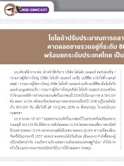 กบั ครง่ึ ปแี รกของปี 2557 จะพบวา่ ยอดขายไดป้ รบั ตวั ลง เปน็ ผลจากกำ� ลงั ซอ้ื ของผู้