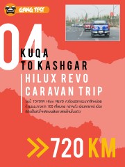 04K u q a to Kashgar Hilux Revo C a r ava n T r i p วนั น้ี TOYOTA Hilux REVO คงตอ้ งออกแรงมากสกั หนอ่ ย ดว้ ยระยะทางกวา่ 700 กโิ ลเมตร กวา่ จะถงึ เมอื งคาชการ์ เมอื ง ทถี่ อื เปน็ หวั ใจหลกั บนเสน้ ทางสายไหมในอดตี 720 km