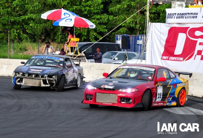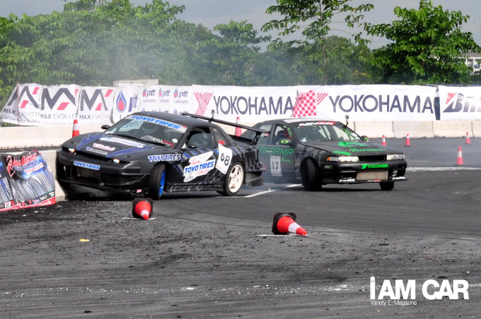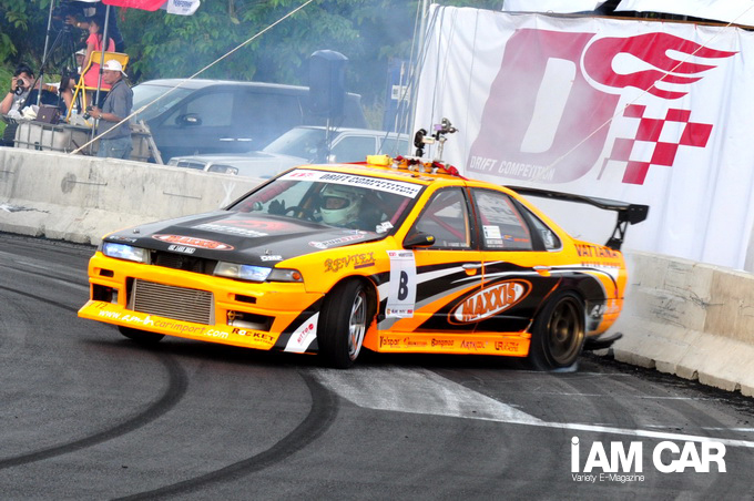CLASS B รอบ 4 คัน ชนะชิงที่ 1 แพ้ชิงที่ 3 คู่แรก “ใหม่ OVER DRIVE YOKOHAMA HKS” เจอกับ “ดี โก๋แก่” สำหรับคู่นี้เป็นการเจอกันถูกคู่จริงๆ เพราะว่าทาง “ใหม่” เพิ่งเริ่มขับดริฟอย่างเป็นจริงเป็นจังเป็นปีที่ 2 ส่วน “ดี โก๋แก่” นั้นเพิ่งเริ่มขับปีนี้เป็นปีแรก แต่ทั้งคู่มีความเหมือนกันก็คือซ้อมเยอะมากๆ เริ่มจากรอบแรก “ใหม่” เป็นฝ่ายนำ “ดี” เป็นฝ่ายตาม รอบนี้ “ใหม่” สามารถเก็บ APEX ได้ทั้ง 3 APEX ส่วน “ดี” นั้นสามารถเก็บ APEX ได้ทั้งหมดเหมือนกันแต่ความเร็วของ ดี นั้นจะช้ากว่า “ใหม่” ทำให้คะแนนในรอบนี้ “ใหม่” ดีกว่าคือได้ 6 ส่วน “ดี” ได้ 4 รอบที่สอง “ดี” เป็นฝ่ายนำบ้างสามารถเก็บ APEX ได้ครบทั้งสาม APEX ส่วน “ใหม่” ไม่สามารถเก็บ APEX ได้ ทำให้คะแนนออกมาคือ ดี 7 ใหม่ 3 รวมสองรอบคะแนน “ดี” มีคะแนนรวมดีกว่าทำให้ผ่านไปชิงที่ 1