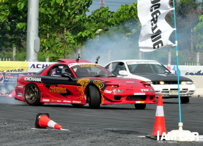 คู่ที่ 2 “SS FLORA GOODYEAR” เจอกับ “โอ๊ต OVERDRIVE YOKOHAMA HKS” คู่นี้ก็เป็นคู่ที่น่าดูอีกคู่หนึ่ง สำหรับ “SS” นั้นเป็นเด็กอายุ 18 ที่ขับได้อย่างซะใจจริงๆ ส่วน “โอ๊ต” นั้นพัฒนาฝีมือมาจากปีที่แล้วได้ดีมากๆ พอคราวนี้มาเจอกันจะมันขนาดไหนมาดูกัน ในรอบแรก “SS” เป็นฝ่ายนำก่อน การขับของ “SS” นั้นก็ไม่ทำให้คนดูผิดหวังเพราะว่าสามารถเก็บ APEX ได้หมด โดยเฉพาะ APEX แรกและ APEX สุดท้าย ที่ต้องใช้ท้ายรถขับเข้าไปเฉียดกำแพงมากที่สุดถึงจะได้คะแนนเยอะ ซึ่ง “SS” ทำได้ดีกว่า “โอ๊ต” ที่ไม่สามารถเก็บ APEX แรกได้ โดย “SS” ได้คะแนน 7 ส่วน “โอ๊ต” ได้คะแนน 3 ในรอบที่สอง “โอ๊ต” เป็นฝ่ายนำก่อนบ้าง ซึ่ง “โอ๊ต” ไม่สามารถเก็บ APEX แรกได้ ทำให้คะแนนหายไปส่วน “SS” นั้น สามารถเก็บได้ทุก APEX และยังขับเข้ามาใกล้รถ “โอ๊ต” แบบว่าเฉียดกันชนกันเลยทำให้คะแนนออกมาเป็น “โอ๊ต” ได้ 4 SS ได้ 6 รวมสองรอบ “SS” เข้าไปรอบชิงที่ 1 ส่วน “โอ๊ต” ไปชิงที่ 3