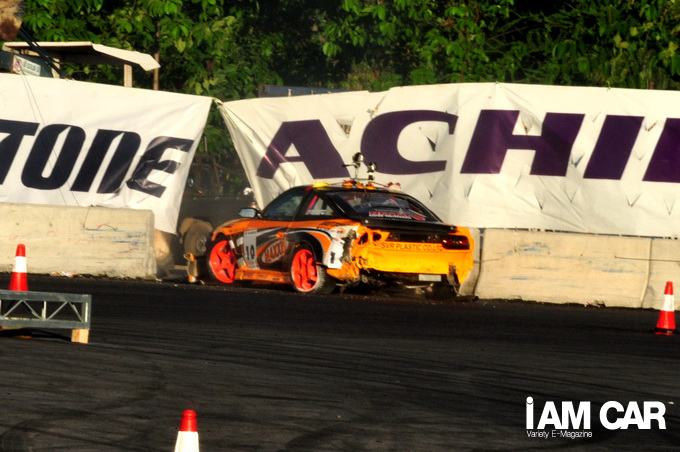 แบบว่าคนดูได้ดูอย่างจุใจจริงๆ ในรอบตามรอบแรก “SS” เป็นฝ่ายออกนำมาก่อน ในจังหวะที่ “SS” ออกตัวแล้วต้องเก็บ APEX แรก ซึ่งต้องใช้ท้ายรถวิ่งไปเก็บ APEX ในจังหวะนี้ “SS” มาแรงมากๆ ท้ายรถเกิดไปสะกิดกับกำแพงและรถเกิดเสียอาการทำให้รถตะแครงขึ้นมา ต้องทำให้หยุดการแข่งขันไปชั่วขณะหนึ่ง เพื่อที่จะเคลื่อนย้ายรถออกจากจุดเกิดเหตุ แต่ตัวของ “SS” ไม่เป็นอะไร แต่รถเสียหายทำให้แข่งต่อไปไม่ได้ “นนท์” จึงเข้าไปชิงที่ 1 แบบชิว…ชิว