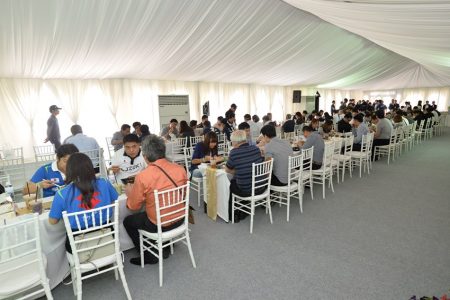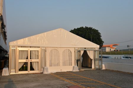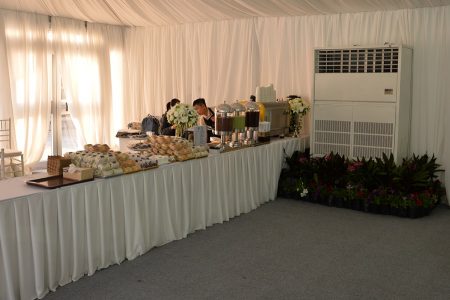 - จัดสร้างเต้นท์ต้อนรับ พร้อมติดแอร์และตกแต่งด้วยผ้า Eye liner ทั้งหลัง