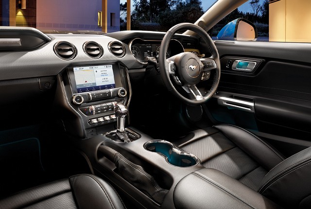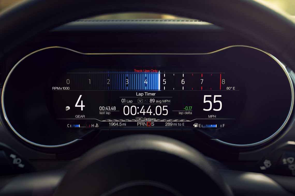 ภายในห้องโดยสารของฟอร์ด มัสแตง ตกแต่งอย่างหรูหราทันสมัยด้วยวัสดุที่ให้สัมผัสนุ่มสบาย พร้อมแผงหน้าปัดแสดงผลดิจิทัลขนาด 12.4 นิ้ว แสดงข้อมูลที่เหมาะสมกับโหมดขับขี่แต่ละโหมด ให้ผู้ขับขี่ได้สัมผัสประสบการณ์ที่ยอดเยี่ยมที่สุดในทุกการใช้งาน นอกจากนี้ เมื่อใช้งานฟีเจอร์ Electronic Line Lock ผู้ขับขี่ยังจะเห็นแอนนิเมชั่นแบบวิดีโอเกมเป็นครั้งแรกบนหน้าจอ 12.4 นิ้วอีกด้วย