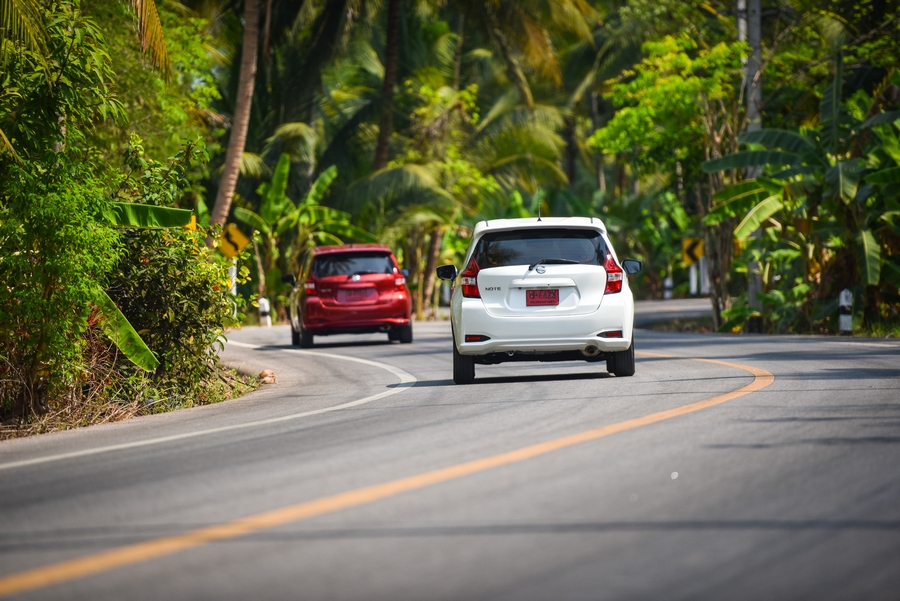 สำหรับการทริปทดสอบในครั้งนี้เป็น One Day Trip โดยใช้เส้นทาง กรุงเทพ – อัมพวา – กรุงเทพ รวมระยะทางไป – กลับกว่า 200 กม. ที่มีทั้งเส้นทางที่ต้องผ่านการจราจรในเมือง, ทางหลวง, แหล่งท่องเที่ยวชุมชนบนทางหลวงชนบท ซึ่งเรียกครบอรรถรสการขับขี่เลยทีเดียว และสัมผัสแรกหลังจากได้เป็นผู้ขับต้องบอกเลยว่าน่าประทับใจทีเดียวกับการขับขี่ โดยเฉพาะบนทางหลวงชนบทที่มีโค้งมากมายทั้งแคบและกว้าง ซึ่ง Nissan Note ก็สามารถตอบโจทย์ผู้ชื่นชอบอรรถรสสไตล์สปอร์ตได้ไม่น้อยทีเดียว ตั้งแต่ขนาดของพวงมาลัยที่จับกระชับมือ รวมถึงการแปรผันน้ำหนักที่ช่วยให้รู้สึกถึงการควบคุมอย่างมั่นใจ ประกอบกับชุดช่วงล่างที่แน่นหนึบด้วยอารมณ์สปอร์ตเล็กๆ ซึ่งสร้างการยึดเกาะถนนในระดับที่ไว้ใจได้ดี รับกับการตอบสนองที่เฉียบคมของพวงมาลัย ก็ยิ่งทำให้เส้นทางทดสอบบนทางหลวงชนบทนี้ช่วยทำให้ขับขี่ Nissan Note ได้อย่างสนุกมากยิ่งขึ้น แต่ถ้าได้งานดีไซน์ของเบาะนั่งที่เพิ่มระยะการปรับสูง – ต่ำ รวมถึงรูปทรงที่สปอร์ต และกระชับสรีระได้มากกว่านี้ก็คงจะช่วยให้เติมเต็มอรรถรสการขับขี่เป็นไปด้วยความสนุกมากกว่านี้ทีเดียว