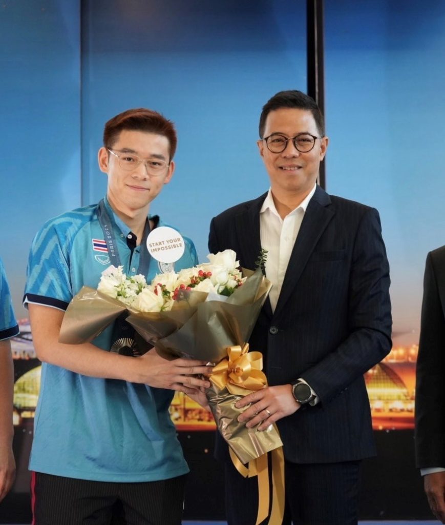 นายณัทธร ศรีนิเวศน์ ผู้ช่วยกรรมการผู้จัดการใหญ่ และคณะผู้บริหาร บริษัท โตโยต้า มอเตอร์ ประเทศไทย จำกัด ร่วมแสดงความยินดี ต้อนรับ “วิว กุลวุฒิ” นักกีฬา Global Team Toyota Athlete (GTTA) / ทัพนักกีฬาแบดมินตันทีมชาติไทย และโค้ช กลับสู่ประเทศไทยด้วยบรรยากาศที่อบอุ่น ณ ท่าอากาศยานสุวรรณภูมิ เมื่อวันที่ 7 สิงหาคม 2567 บริษัท โตโยต้า มอเตอร์ ประเทศไทย จำกัด มีความยินดีอย่างภาคภูมิใจที่ได้ร่วมเป็นส่วนหนึ่งในการสนับสนุน และพัฒนาวงการกีฬาแบดมินตันในประเทศไทย ผ่านการเป็นการเป็นผู้สนับสนุนการแข่งขันแบดมินตันระดับนานาชาติในประเทศไทย สมาคมกีฬาแบดมินตันแห่งประเทศไทย ในพระบรมราชูปถัมภ์ เพื่อให้แฟนกีฬาแบดมินตันไทยได้ชม และเชียร์ทัพนักกีฬาไทย พร้อมสร้างผลงานให้กับนักกีฬาระดับโลกอย่างต่อเนื่อง รวมถึงสานต่อแนวคิด Start Your Impossible ชวนคนไทยขับเคลื่อนสู่ทุกความเป็นไปได้ไปด้วยกัน