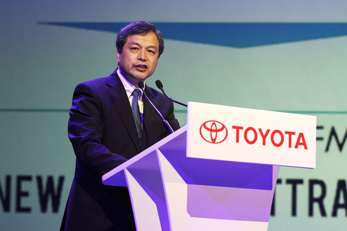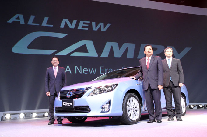 มร.เคียวอิจิ ทานาดะ กรรมการผู้จัดการใหญ่ บริษัท โตโยต้า มอเตอร์ ประเทศไทย จำกัด พร้อมด้วย มร.มิชิฮิโกะ ซาโต้ หัวหน้าวิศวกร บริษัท โตโยต้า มอเตอร์ คอร์ปอเรชั่น ประเทศญี่ปุ่น และ นายวิเชียร เอมประเสริฐสุข รองกรรมการผู้จัดการใหญ่ บริษัท โตโยต้า มอเตอร์ ประเทศไทย จำกัด ร่วมแถลงข่าวแนะนำรถยนต์นั่งขนาดกลางสุดหรู ใหม่ล่าสุด “คัมรี ใหม่…A New Era of Prestige” เมื่อวันที่ 15 มีนาคม ศกนี้ ที่ ห้องรอยัล พารากอนฮอลล์ สยามพารากอน