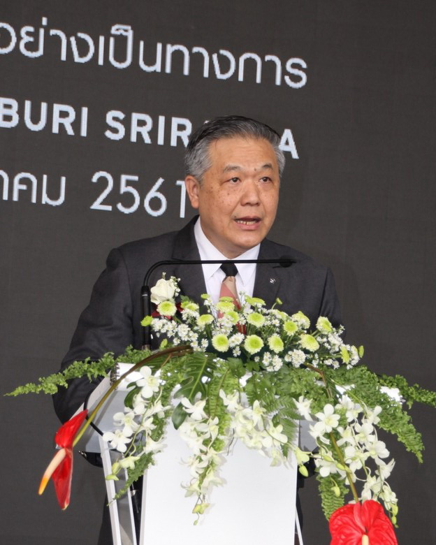 นายชาญชัย ตระการอุดมสุข ประธานบริหารบริษัท มาสด้า เซลส์ (ประเทศไทย) จำกัดขึ้นกล่าวแสดงความยินดีในพิธีเปิดโชว์รูมแห่งใหม่ล่าสุด