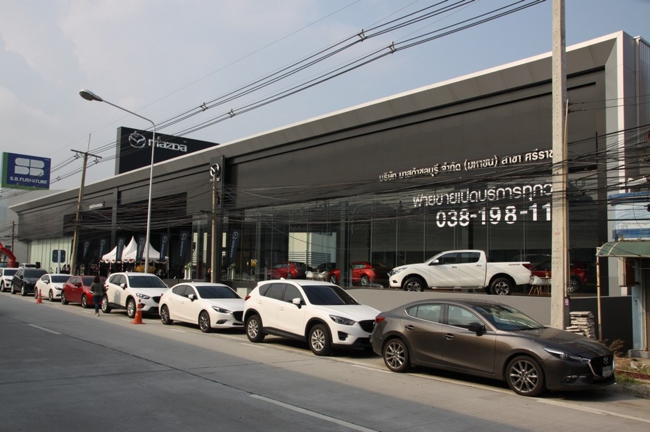 มาสด้าบุกตลาดเมืองท่องเที่ยวและเมืองอุตสาหกรรมที่สำคัญของประเทศไทยที่อำเภอศรีราชา จังหวัดชลบุรี ผุดโชว์รูมแห่งใหม่ภายใต้ภาพลักษณ์ใหม่ ยกระดับการบริการลูกค้าเพื่อสร้างความพอใจสูงสุด แวดล้อมด้วยบรรยากาศหรูหรา แต่แฝงไปด้วยการต้อนรับอย่างอบอุ่น พร้อมการบริการที่เป็นเลิศจากทีมผู้บริหารมืออาชีพอย่าง นายจเรรัฐ และนายจารุรัฐ ปิงคลาศัย ประธานกรรมบริหาร และประธานเจ้าหน้าที่บริหาร เพื่อรองรับลูกค้าที่เพิ่มขึ้นอย่างรวดเร็ว