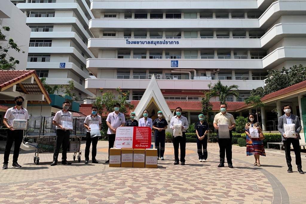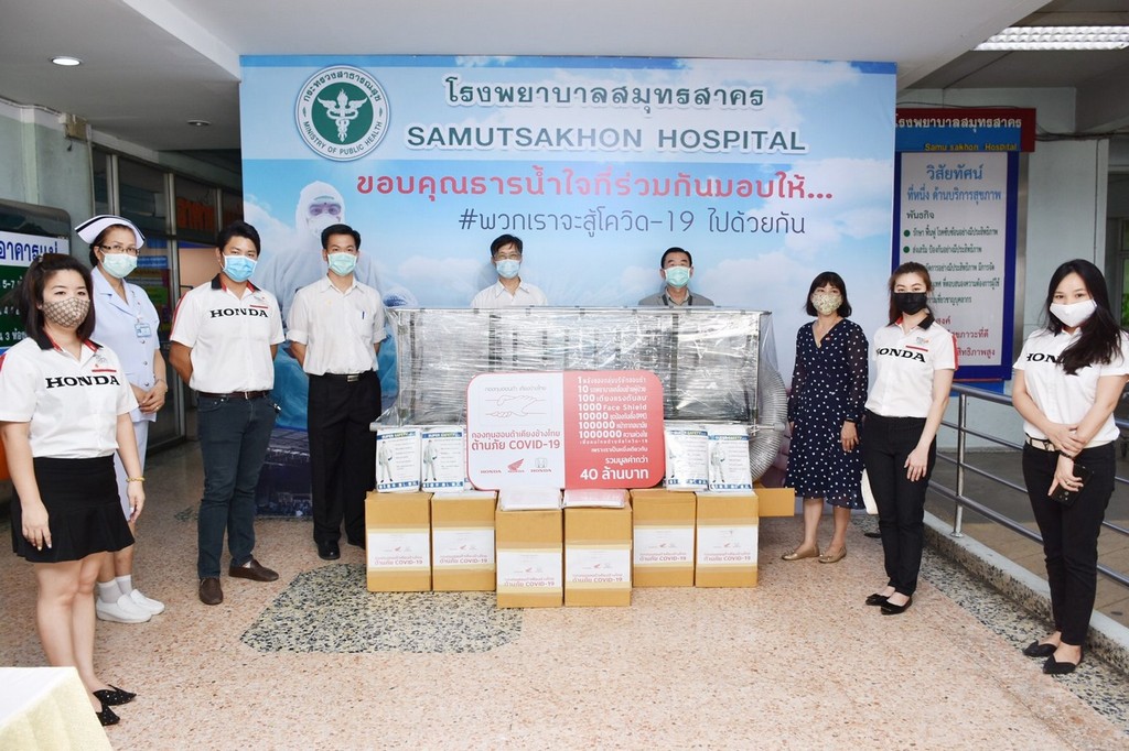 ตัวแทนผู้จำหน่ายรถยนต์ฮอนด้า บจก. สมุทรสาคร ฮอนด้าคาร์ส์ และตัวแทนผู้จำหน่ายรถจักรยานยนต์ฮอนด้า บจก. สี่มิตรมหาชัย บจก. ฮอนด้ามหาชัย สกลการวัฒนา บจก. ชลธารออโต้ไบค์ (2001) และ บจก. เอ็มมอเตอร์ (1994) ส่งมอบเตียงผู้เคลื่อนย้ายผู้ป่วยแบบแรงดันลบและอุปกรณ์การแพทย์ ให้แก่ โรงพยาบาลสมุทรสาคร จังหวัดสมุทรสาคร