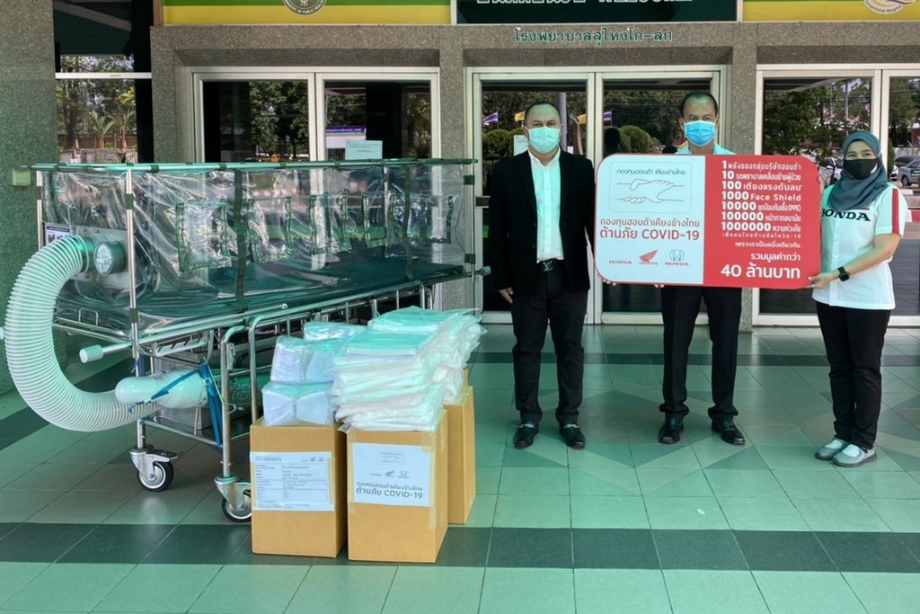 กองทุนฮอนด้าเคียงข้างไทย ภายใต้มูลนิธิฮอนด้าประเทศไทย ร่วมกับกลุ่มบริษัทฮอนด้าในประเทศไทย เดินหน้าส่งมอบเตียงเคลื่อนย้ายผู้ป่วยแบบแรงดันลบ (Negative Pressure Mobile Bed) 100 เตียง และอุปกรณ์ทางการแพทย์ให้แก่โรงพยาบาลครบทั้ง 96 แห่งทั่วประเทศ รวมมูลค่ากว่า 40 ล้านบาท พร้อมทั้งผนึกกำลังจากเครือข่ายผู้จำหน่ายรถยนต์และรถจักรยานยนต์ฮอนด้าทั่วประเทศ ร่วมกระจายสิ่งของช่วยเหลือสังคมไทยท่ามกลางวิกฤตไวรัสโควิด-19 ประกอบด้วยเตียงเคลื่อนย้ายผู้ป่วยแบบแรงดันลบที่ได้พัฒนาจากแนวคิดของโรงพยาบาลวชิรพยาบาล 100 เตียง ชุดป้องกันเชื้อ PPE 10,000 ชุด หน้ากาก Face Shield 1,000 ชิ้น หน้ากากอนามัยแบบผ้า 100,000 ชิ้น พร้อมบริการรถพยาบาลกองทุนฮอนด้าเคียงข้างไทย 10 คัน และรถจักรยานยนต์พยาบาล (Motorlance) 10 คัน เพื่อเป็นส่วนหนึ่งในการสนับสนุน อำนวยความสะดวกและเพิ่มความปลอดภัยให้แก่บุคลากรทางการแพทย์ในการปฏิบัติหน้าที่ในช่วงการแพร่ระบาดของไวรัสโควิด-19