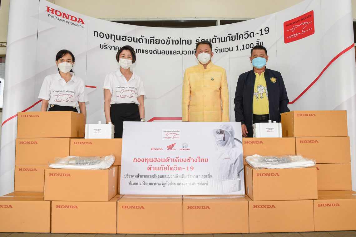 ท่ามกลางสถานการณ์การแพร่ระบาดของเชื้อโควิด-19 ที่กระจายวงกว้าง กองทุนฮอนด้าเคียงข้างไทย ภายใต้มูลนิธิฮอนด้าประเทศไทย ร่วมกับกลุ่มบริษัทฮอนด้าในประเทศไทย ขอเป็นอีกหนึ่งพลังในการส่งมอบความช่วยเหลือเพื่อเสริมเกราะป้องกันและสนับสนุนการทำงานให้บุคลากรทางการแพทย์ทุกท่านที่ปฏิบัติหน้าที่อย่างหนัก และช่วยป้องกันการแพร่ระบาดเชื้อโควิด-19 ในผู้ป่วย ด้วยการส่งมอบนวัตกรรมหน้ากากแรงดันลบและแรงดันบวกที่ผลิตโดยทีมวิศวกรฮอนด้าจิตอาสา เพิ่มเติมจำนวน 1,100 ชิ้น รวมมูลค่า 42 ล้านบาท ให้แก่กระทรวงสาธารณสุขและโรงพยาบาลรามาธิบดี เพื่อจัดสรรตามความต้องการและกระจายต่อไปยังโรงพยาบาลรัฐ จำนวน 114 แห่งทั่วประเทศ รวมถึงกรมราชทัณฑ์ เพื่อกระจายต่อไปยังทัณฑสถานโรงพยาบาลราชทัณฑ์ โรงพยาบาลเรือนจำกลางบางขวาง และโรงพยาบาลเรือนจำกลางสมุทรปราการ
